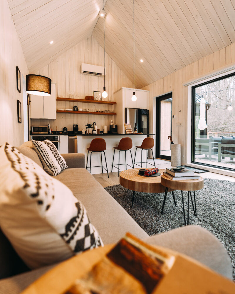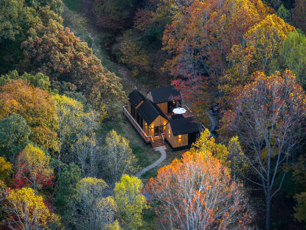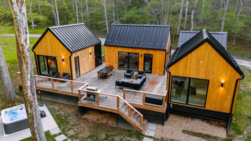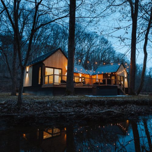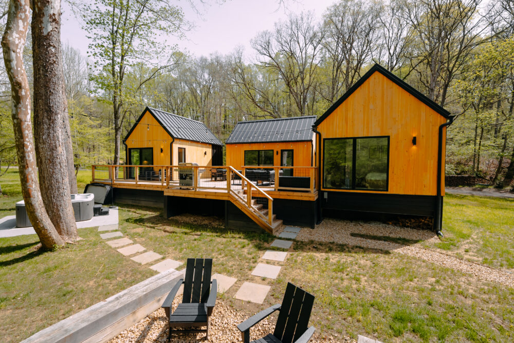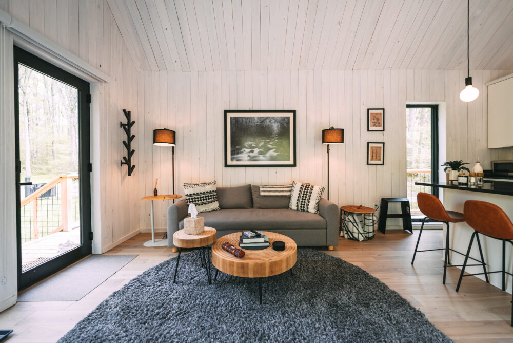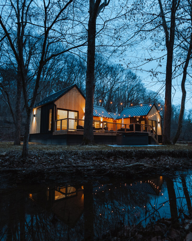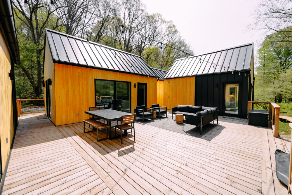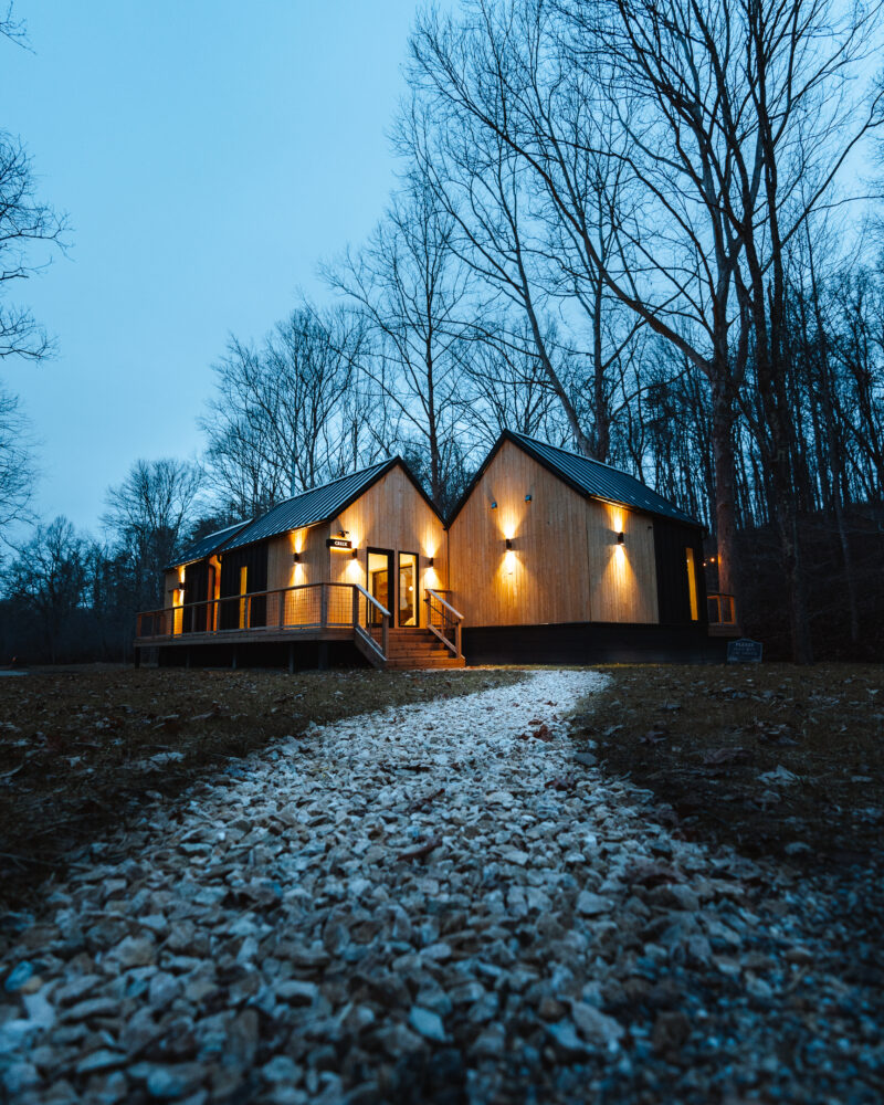 Introducing Villa Creek at Hugga In the Hills. Our pet free Scandinavian inspired DECONSTRUCTED villa; four unique buildings nestled within the heart of the Hocking Hills. Sprawling over 42 acres of private landscape, this is more than a getaway—it’s an experience of outdoor living. Just a leisurely 3-4 miles from Cedar Falls and the storied Old Man’s Cave, you’re perfectly positioned to explore the natural wonders that define the Hocking Hills.