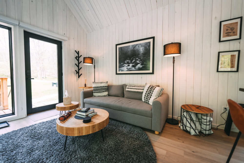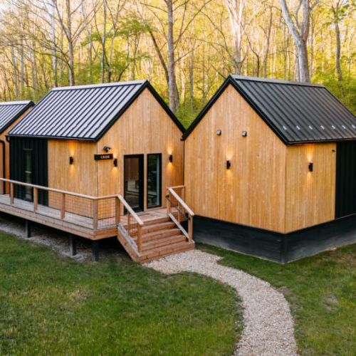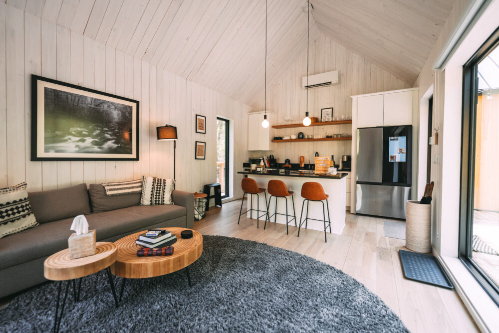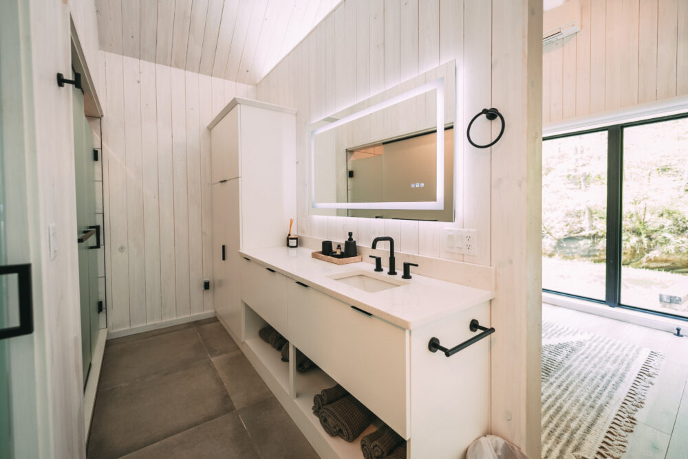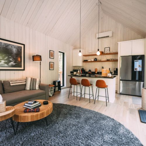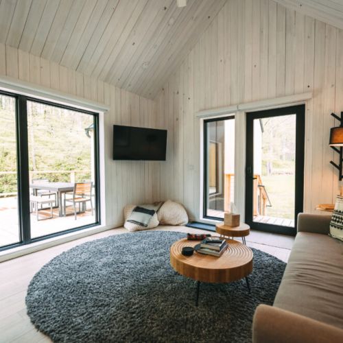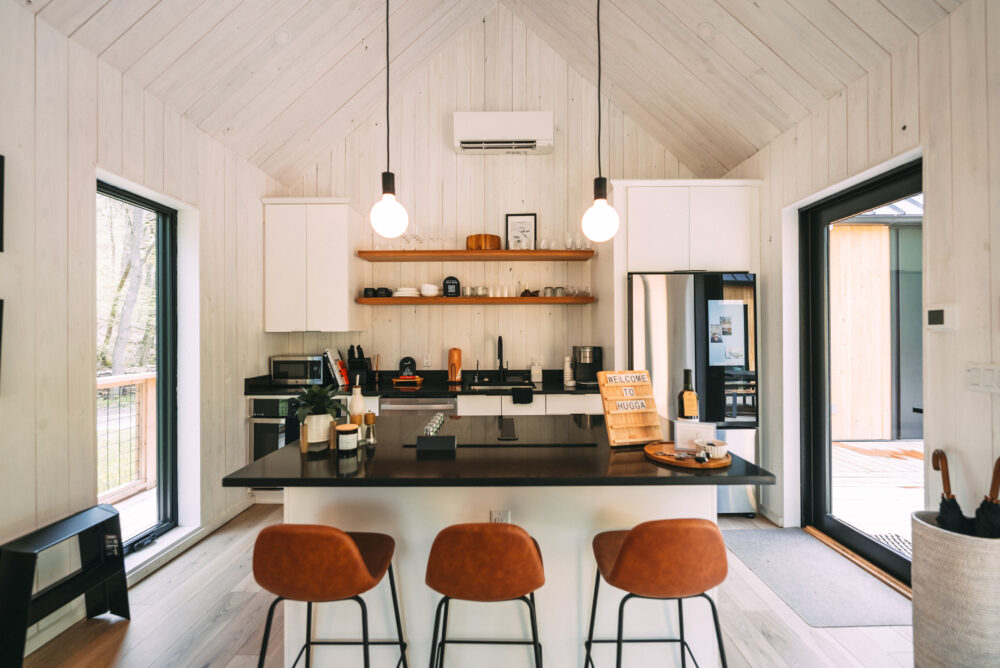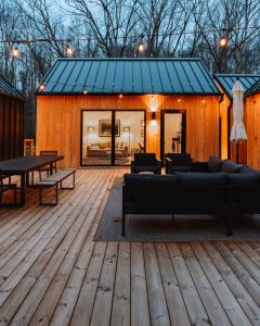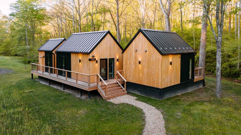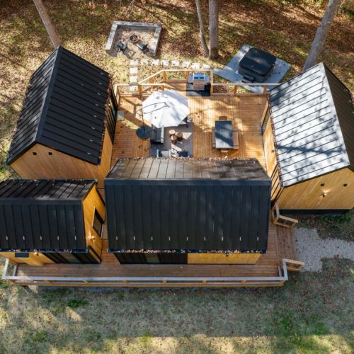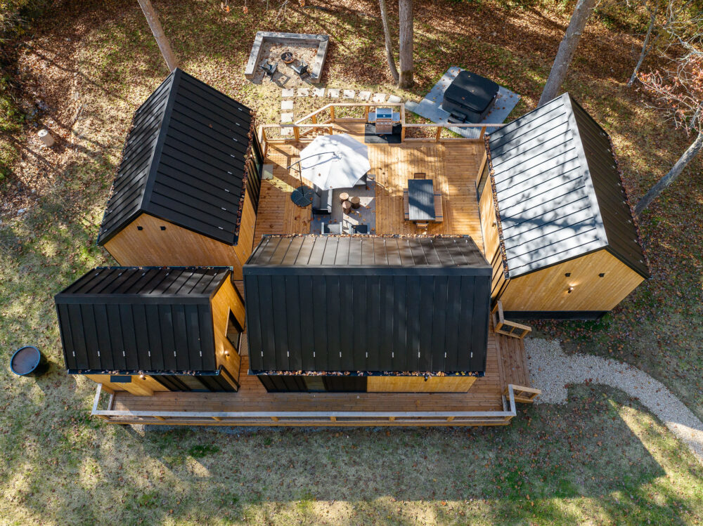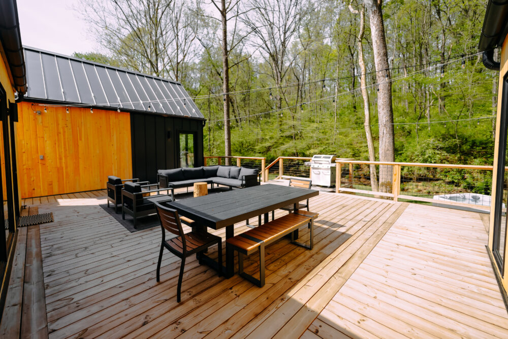 Introducing Villa Creek at Hugga In the Hills. Our pet free Scandinavian inspired DECONSTRUCTED villa; four unique buildings nestled within the heart of the Hocking Hills. Sprawling over 42 acres of private landscape, this is more than a getaway—it’s an experience of outdoor living. Just a leisurely 3-4 miles from Cedar Falls and the storied Old Man’s Cave, you’re perfectly positioned to explore the natural wonders that define the Hocking Hills.