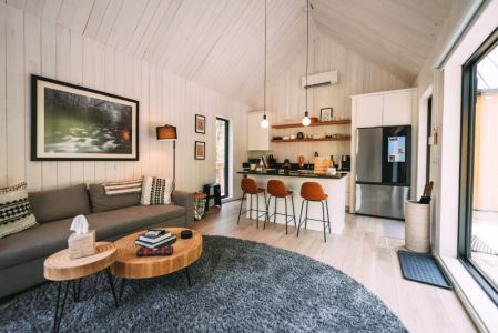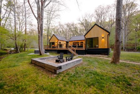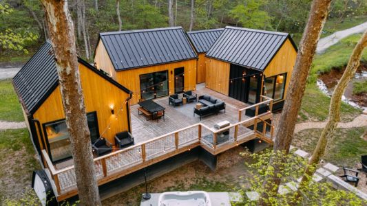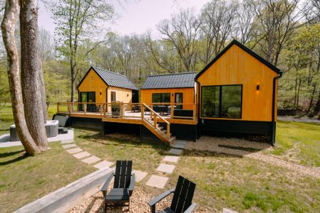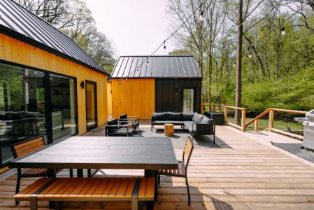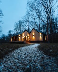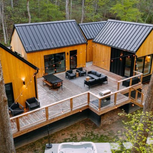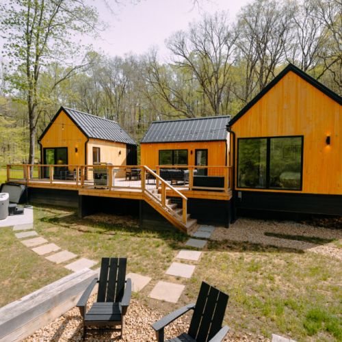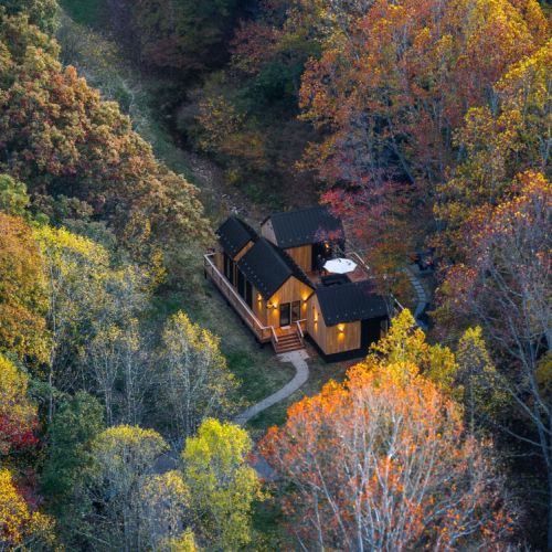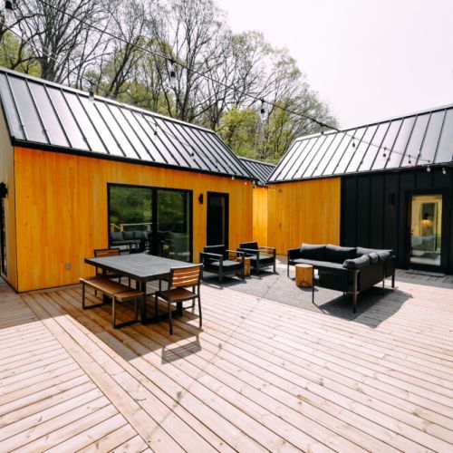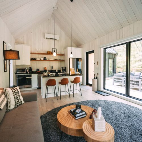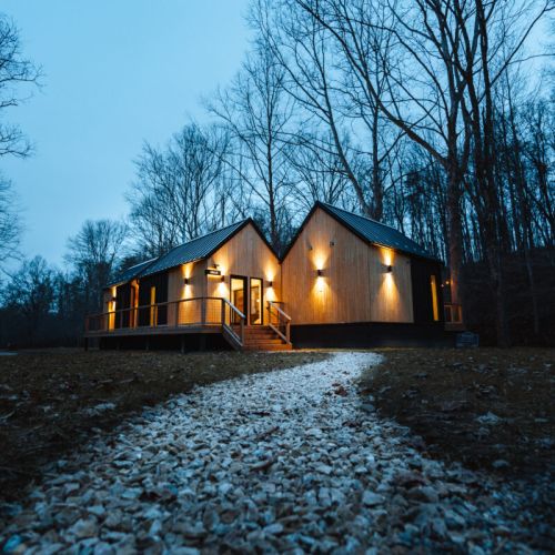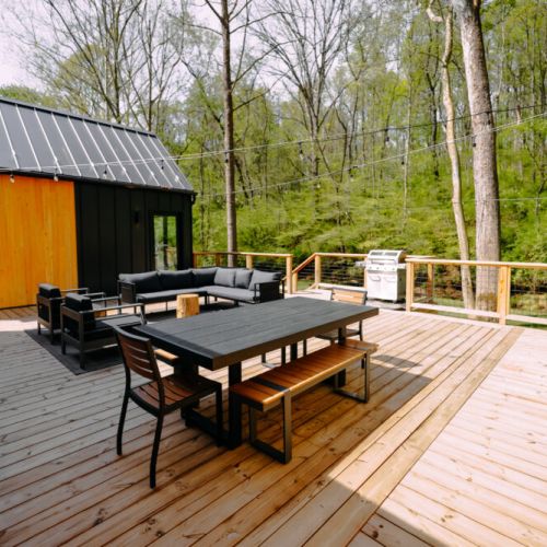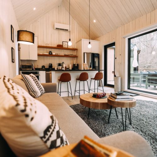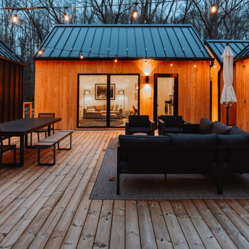 Introducing Villa Creek at Hugga In the Hills. Our pet free Scandinavian inspired DECONSTRUCTED villa; four unique buildings nestled within the heart of the Hocking Hills. Sprawling over 42 acres of private landscape, this is more than a getaway—it's an experience of outdoor living. Just a leisurely 3-4 miles from Cedar Falls and the storied Old Man's Cave, you're perfectly positioned to explore the natural wonders that define the Hocking Hills.
