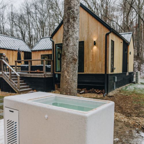 A Scandinavian-inspired deconstructed cabin made up of four modern buildings tucked into 42 private acres. Pets are allowed on a case-by-case basis. Enjoy a private sauna, cold plunge, hot tub, EV charging, and wooded trails. Minutes from Cedar Falls and Old Man’s Cave, it’s a place to slow down, explore, and reconnect with nature.