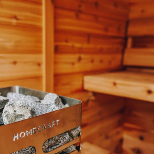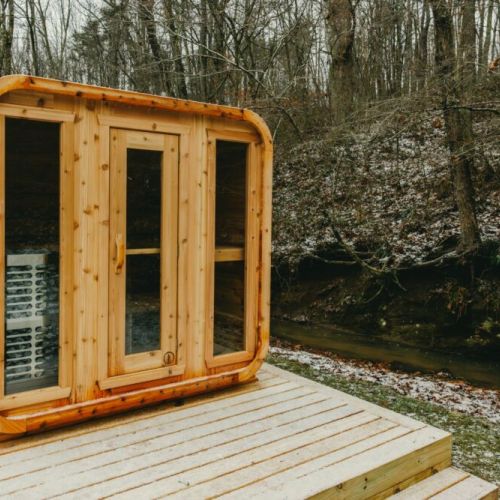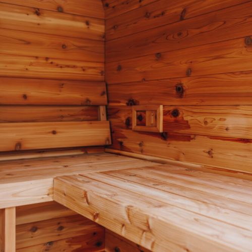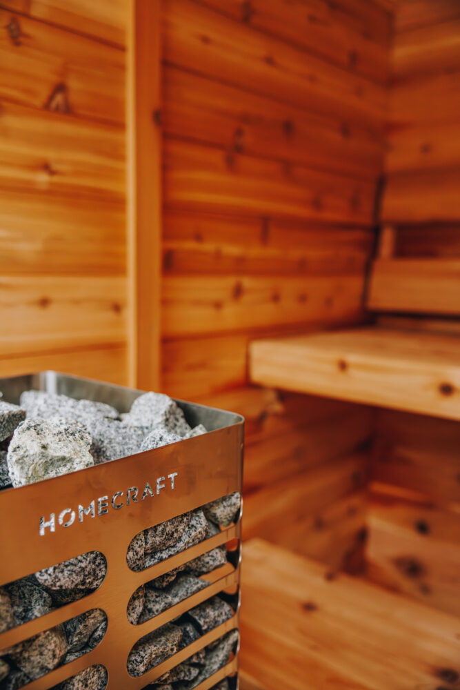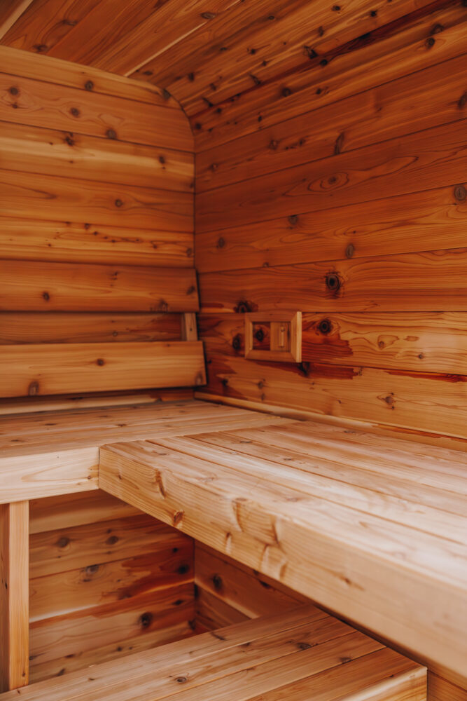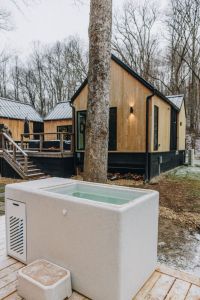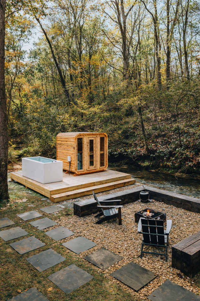 Each cabin features a private Scandinavian-style sauna and cold plunge for a true wellness experience.