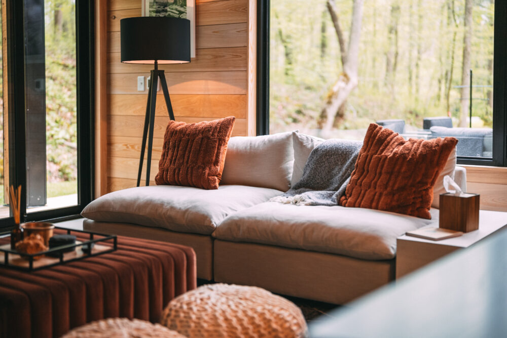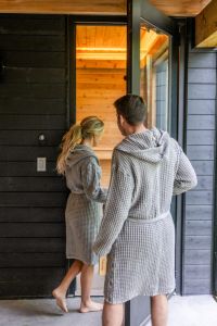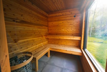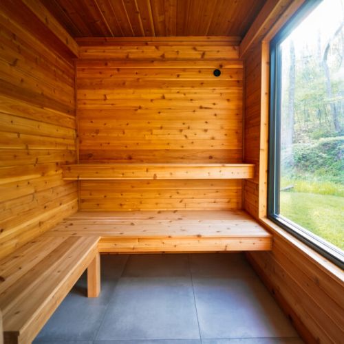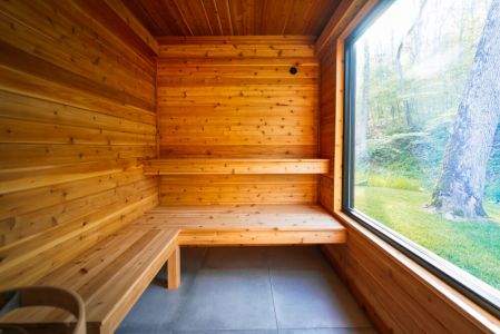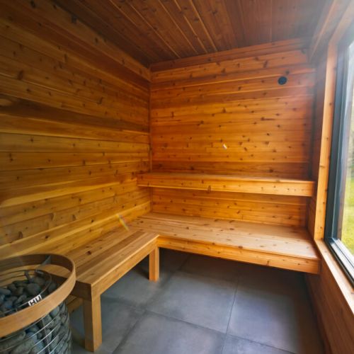 Each cabin features a private Scandinavian-style sauna and cold plunge for a true wellness experience.