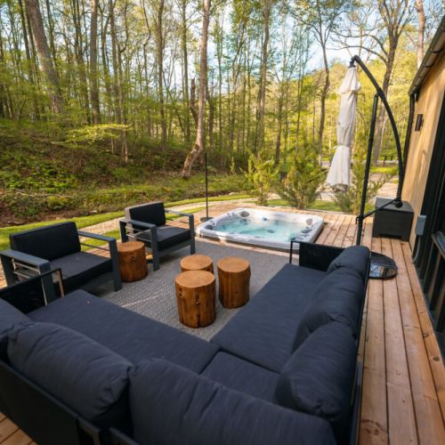 We had a wonderful family weekend from the moment we arrived! The cabin is modern, appointed beautifully, and peacefully tucked back in the woods away from the other cabins.