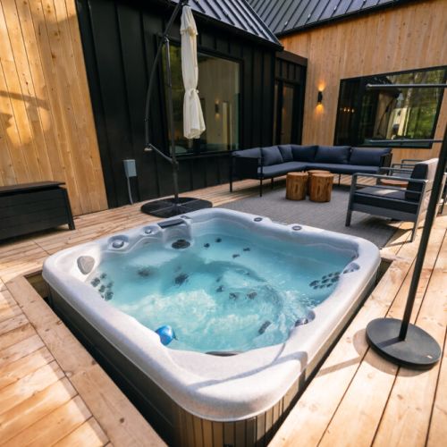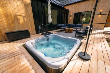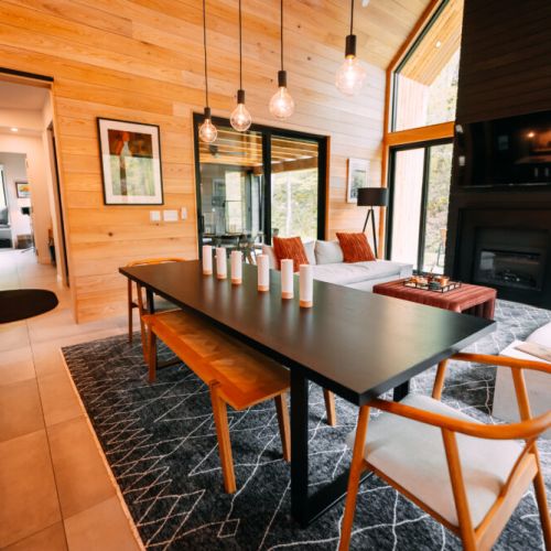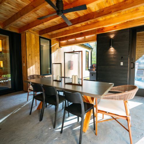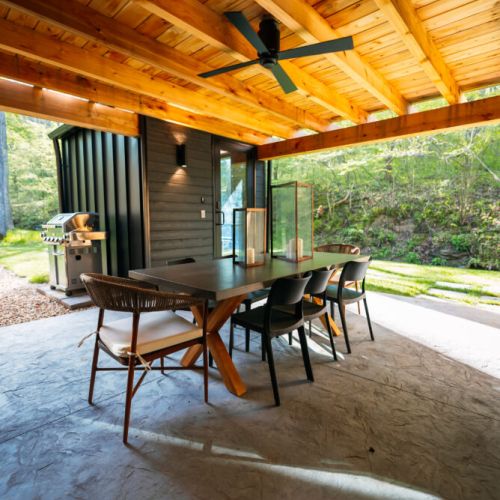Outside, we designed the space for simple relaxation. Light a fire, cook on the grill, sit back in the outdoor chairs, or end the day in the hot tub under the stars. Firewood is provided on site, and the cabin includes free parking and a Type II EV charger.