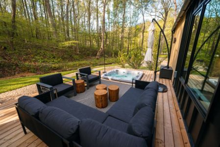This place was awesome. We didn't want to leave. There are very thoughtful amenities, fully furnished kitchen, comfortable living area and great outdoor space. Everything from the creek and fire pit to the hot tub and sauna made this a luxury v...